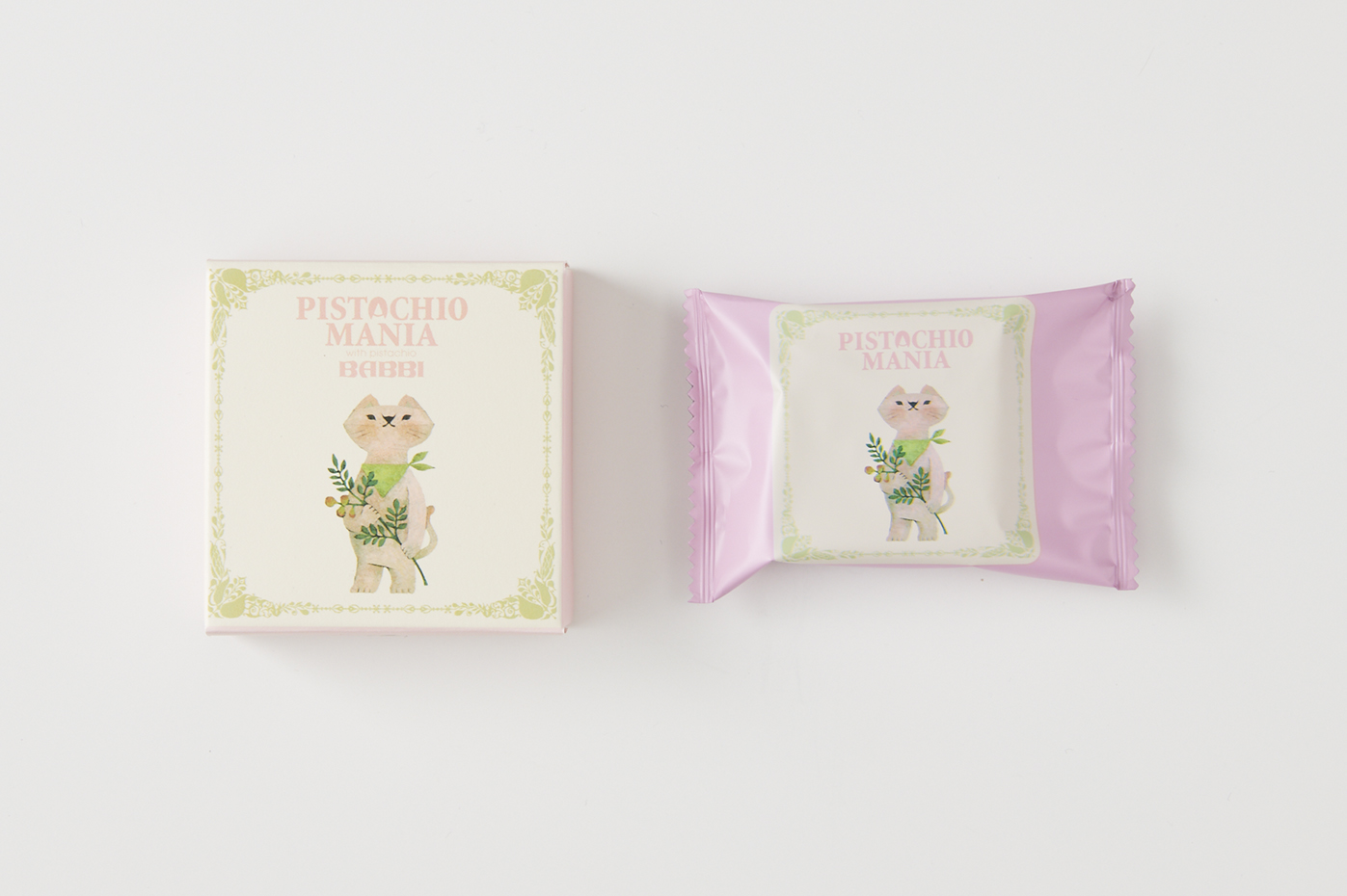 バターの香りが豊かなラングドシャ生地に、細かく刻んだピスタチオとイタリア産ピスタチオペーストをあわせて焼きあげ、肉厚なあまおう苺チョコレートをサンドしました。